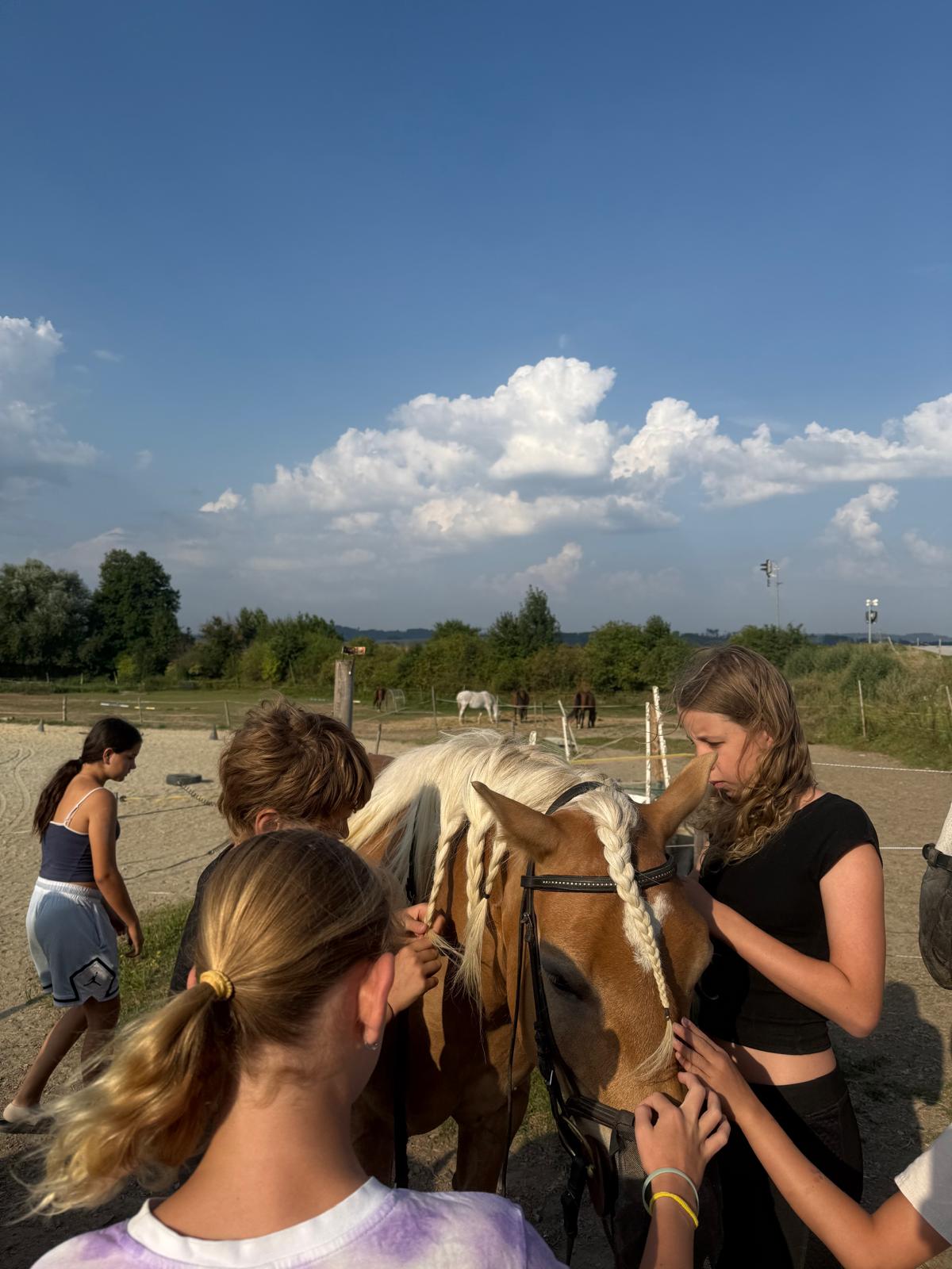 Děti se naučí základním znalostem o koních, jízdě, ošetřování a práce s koňmi. Pro pokročilejší jezdce možnost účasti na veřejných akcích a hobby závodech.